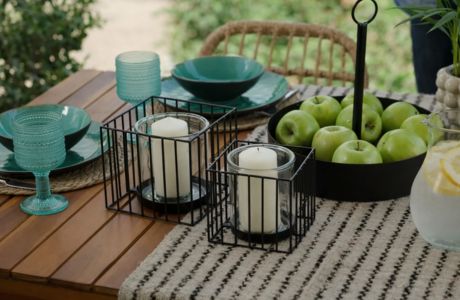 Στρώστε το τραπέζι. Ένα μπολ με φρούτα, μια κομψή κανάτα, κεριά, ένα φυτό σε κασπώ. Δημιουργήστε ένα κεντρικό σημείο που τραβά το βλέμμα και κάνει τον χώρο να μοιάζει έτοιμος να χρησιμοποιηθεί.